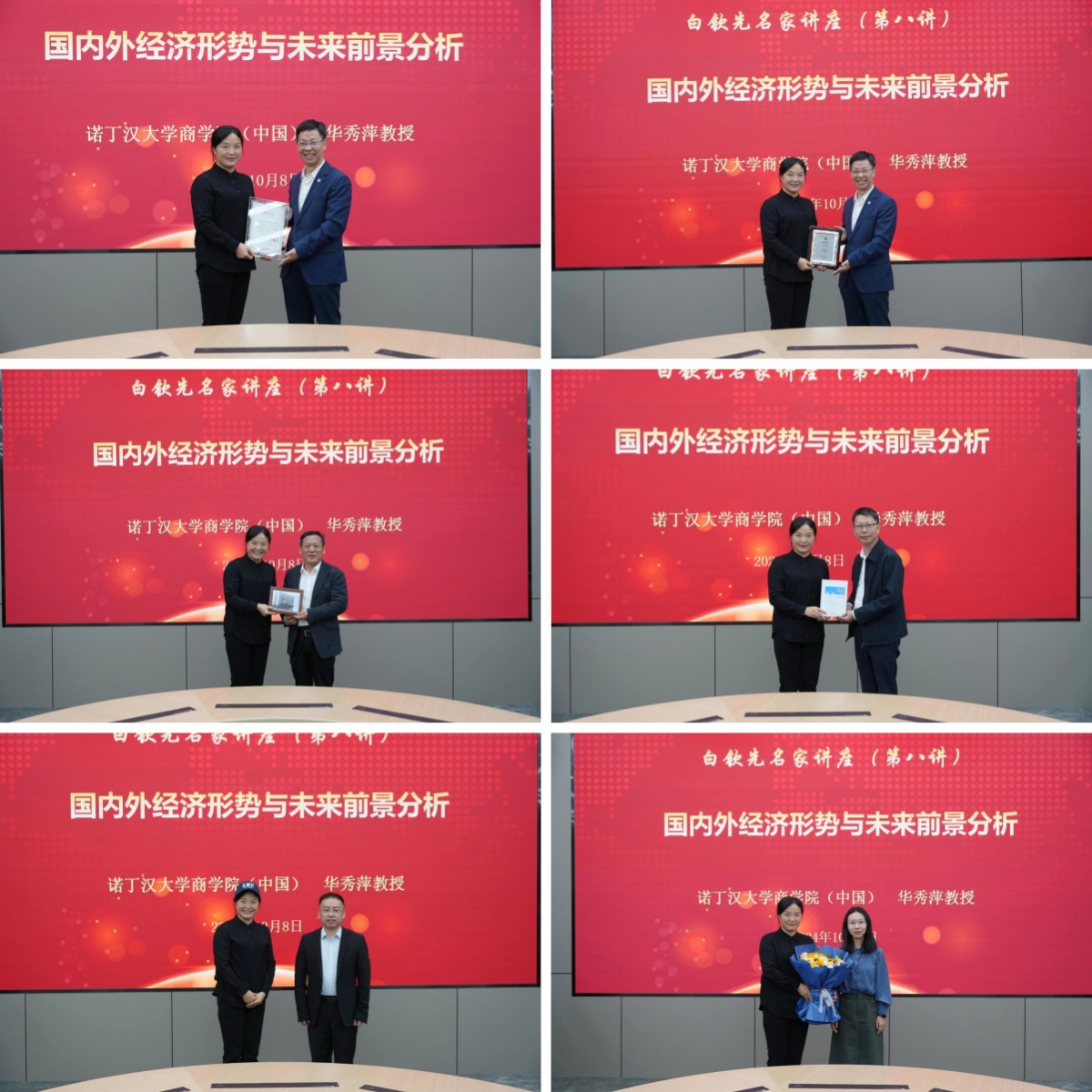 讲座结束后,余淼杰为华秀萍教授颁发了白钦先名家讲座纪念证书和国产一区二区日本在线客座教授聘书,李政为华秀萍教授赠送纪念照片,经济学部副主任霍伟东教授为华秀萍教授赠送了《国产一区二区日本在线智库报告》,经济学院教授张广辉为华秀萍教授赠送校帽,经济学院教师代表荣莹为华秀萍教授献花致敬,与会嘉宾合影留念。
